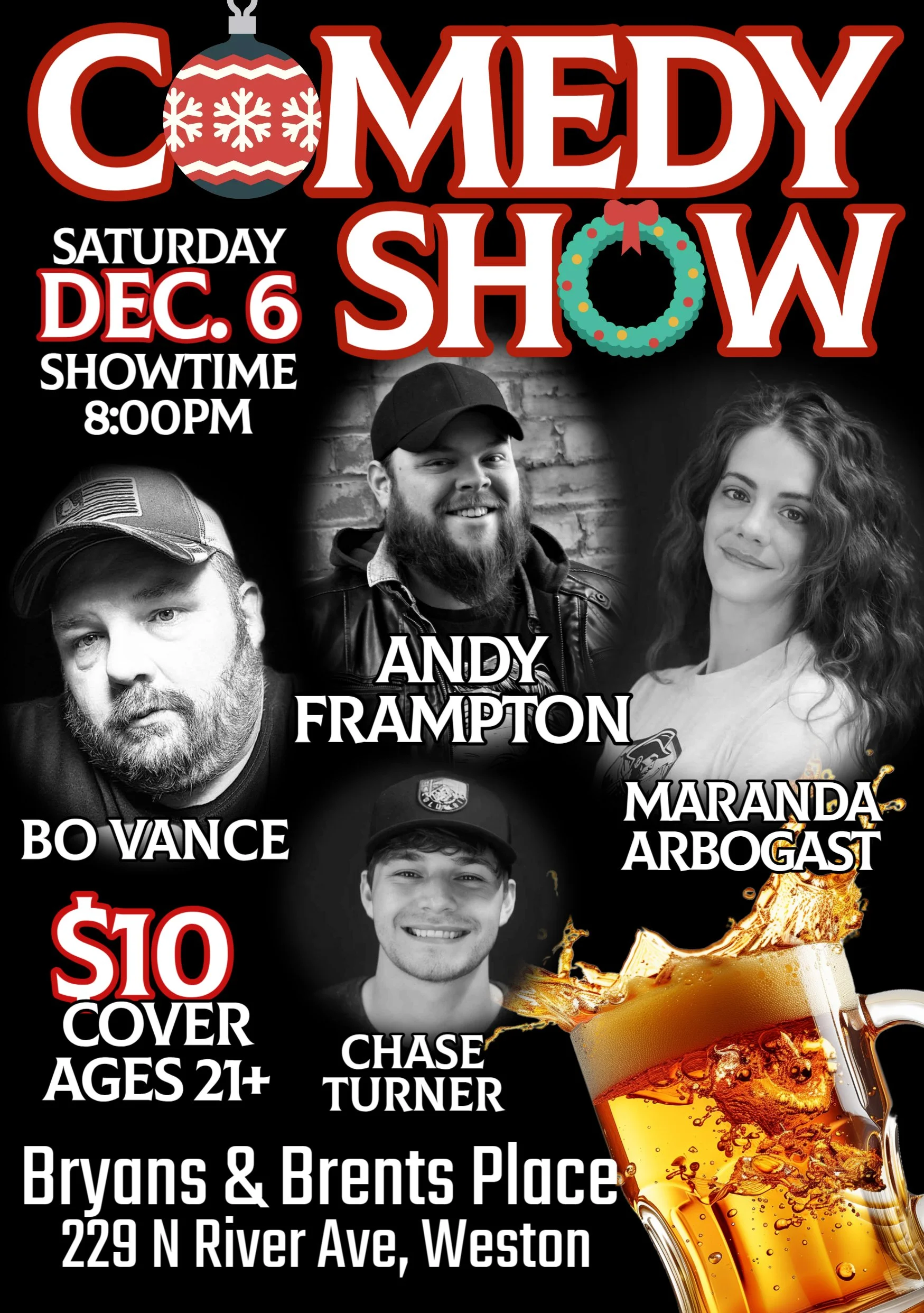 We are making our return to Weston, WV and hitting up Bryans and Brents Place! A night filled with laughter and drinks with Bo Vance, Andy Frampton, Chase Turner and Maranda Arbogast! It’s gonna be a wild one! Stick around afterwards for a fun dance party!