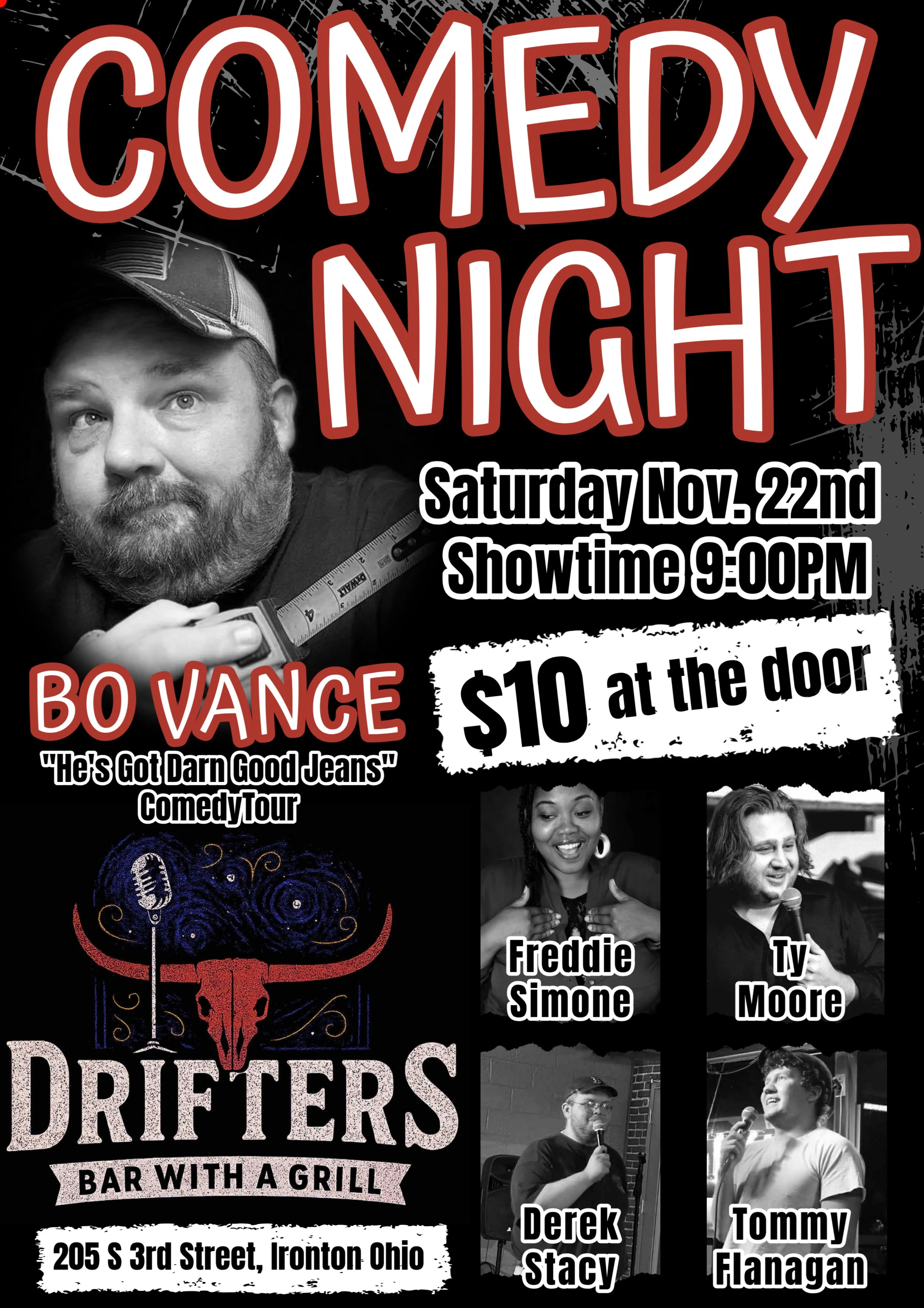 “My grandmother won’t speak to me anymore. She doesn’t approve of my comedy. Plus she died almost 20 years ago.” Bo Vance is a West Virginia based standup comedian who specializes in turning his unfiltered thoughts into hilarious observational humor. Entertaining crowds for over 25 years, Bo has seen the stage as a musician, comedian and even dabbled in the professional wrestling industry. “Now that my children can open their own cans of Spaghetti-O’s, I can get out and perform on a more regular basis.” A lifelong resident of West Virginia, Bo seeks to shatter the negative image that West Virginians receive throughout the country. “Soon as I get this ankle monitor off, I’m going on tour.” Bo has opened and featured for many national touring comedians such as “Last Comic Standing” Winner Jon Reep, viral country comedian Danae Hays, and Maddie Wiener (The Tonight Show, Comedy Central)